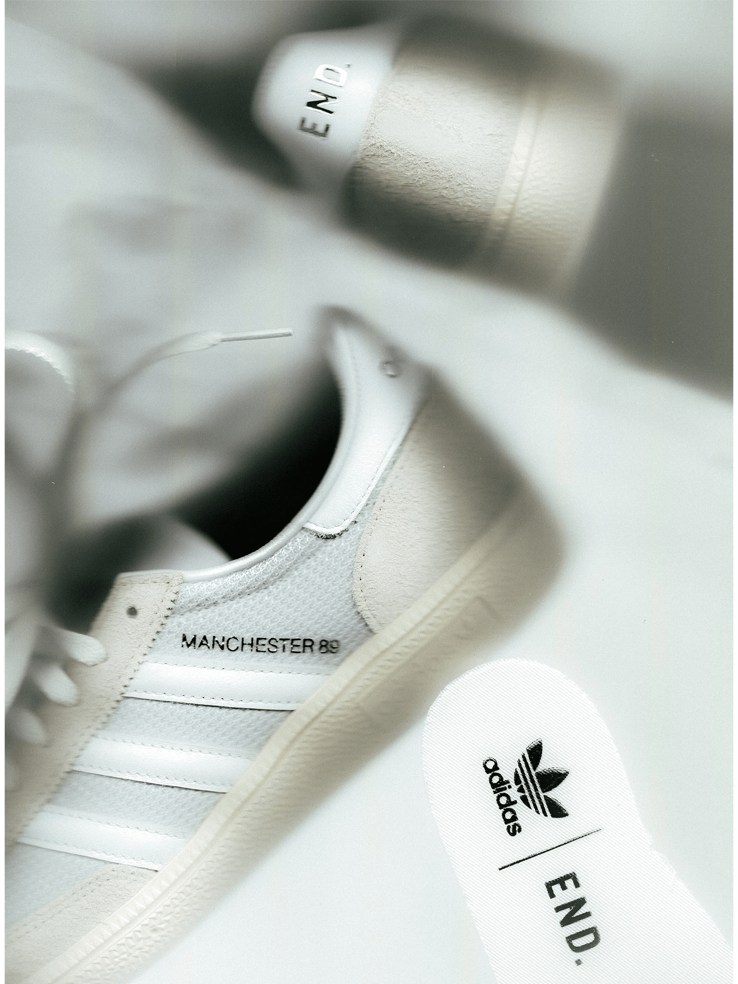 Limited to just 500 pairs, the sneaker features silver “Manchester 89” branding on the side, tumbled leather 3-Stripes, and a limited-edition heel stamp — numbered on the left foot with the END. logo on the right. An understated yet powerful tribute to Manchester’s enduring cultural legacy and the collaboration between END. and adidas.