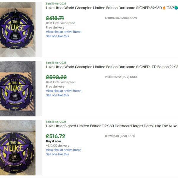 Each dartboard is personally autographed by Luke Littler across the bullseye, celebrating his achievements and offering enthusiasts a unique piece of darts history. The limited nature of this release has sparked significant interest, leading to a surge in demand on secondary resale markets.